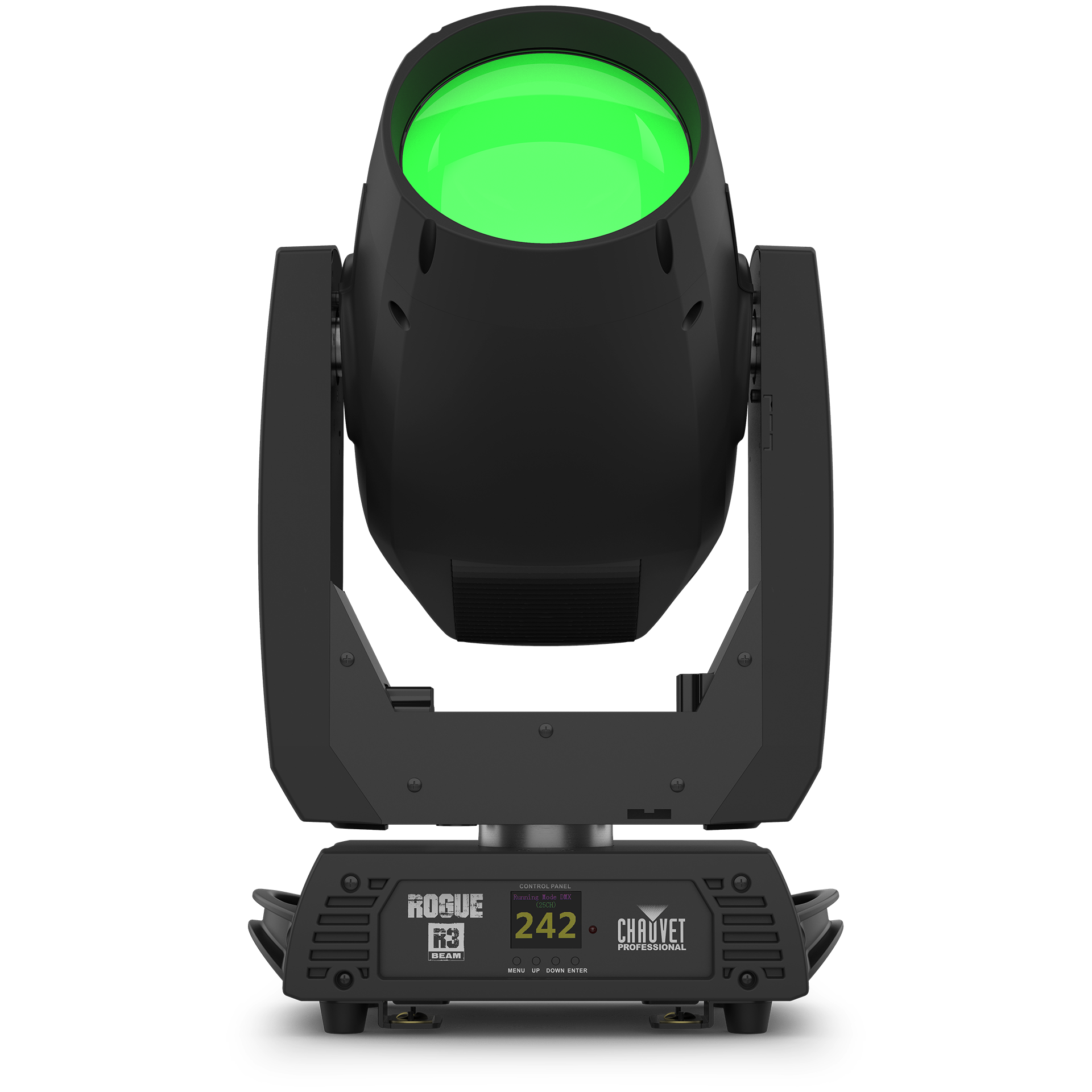 The Rogue R2E Spot is a creative powerhouse, designed to produce a wide range of dynamic visuals. It features two separate wheels for patterns (gobos) and two for colors, allowing you to layer and morph them for unique projected looks. It can also split its beam into three rotating shafts of light, creating spectacular mid-air effects for any event.