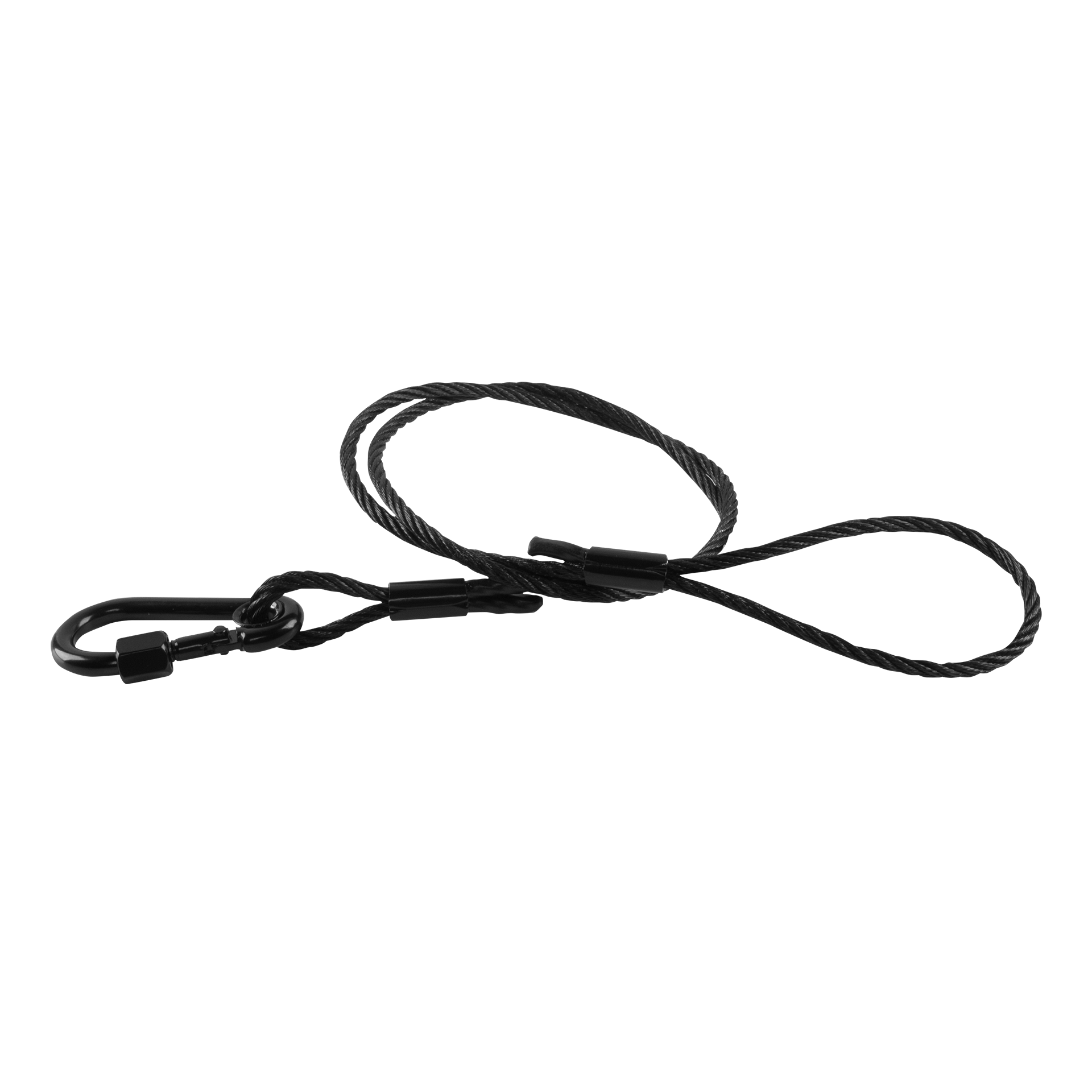 The SC-07 is a strong steel cable used as a backup safety measure for hanging equipment like lights or speakers. Its main job is to catch the fixture if its primary mount fails, preventing it from falling and ensuring safety. The black finish helps it blend in with stage rigging.