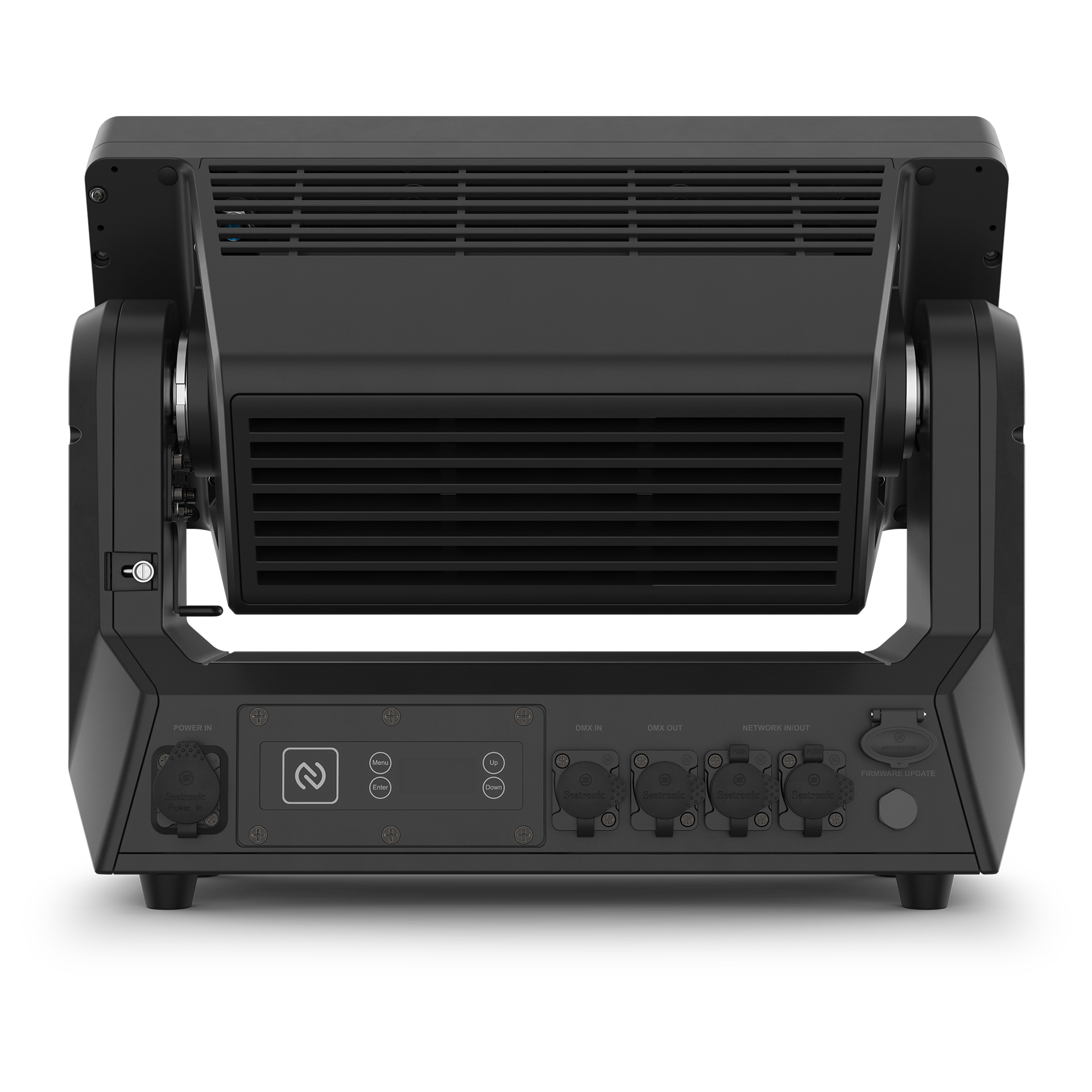 Delivers a wide 180° motorized tilt range for precise and dynamic fixture positioning.