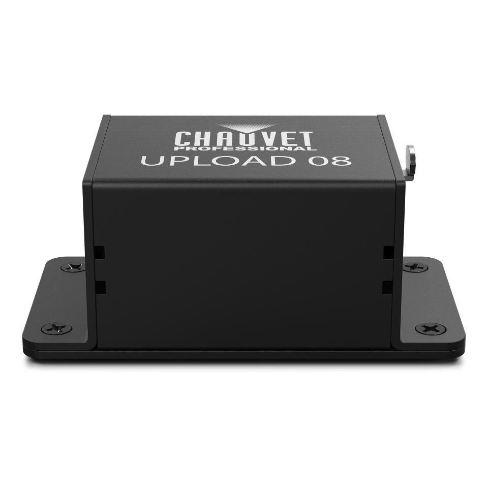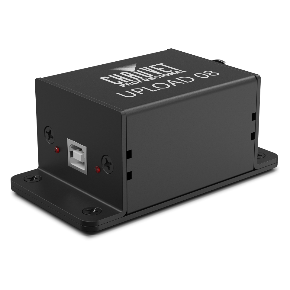 UPLOAD 08 is a dedicated hardware tool that lets you update the software on your Chauvet Professional Maverick and Rogue lighting fixtures. You connect it to your computer with a USB cable and then to your lights, allowing you to easily keep them running with the latest features and performance improvements.