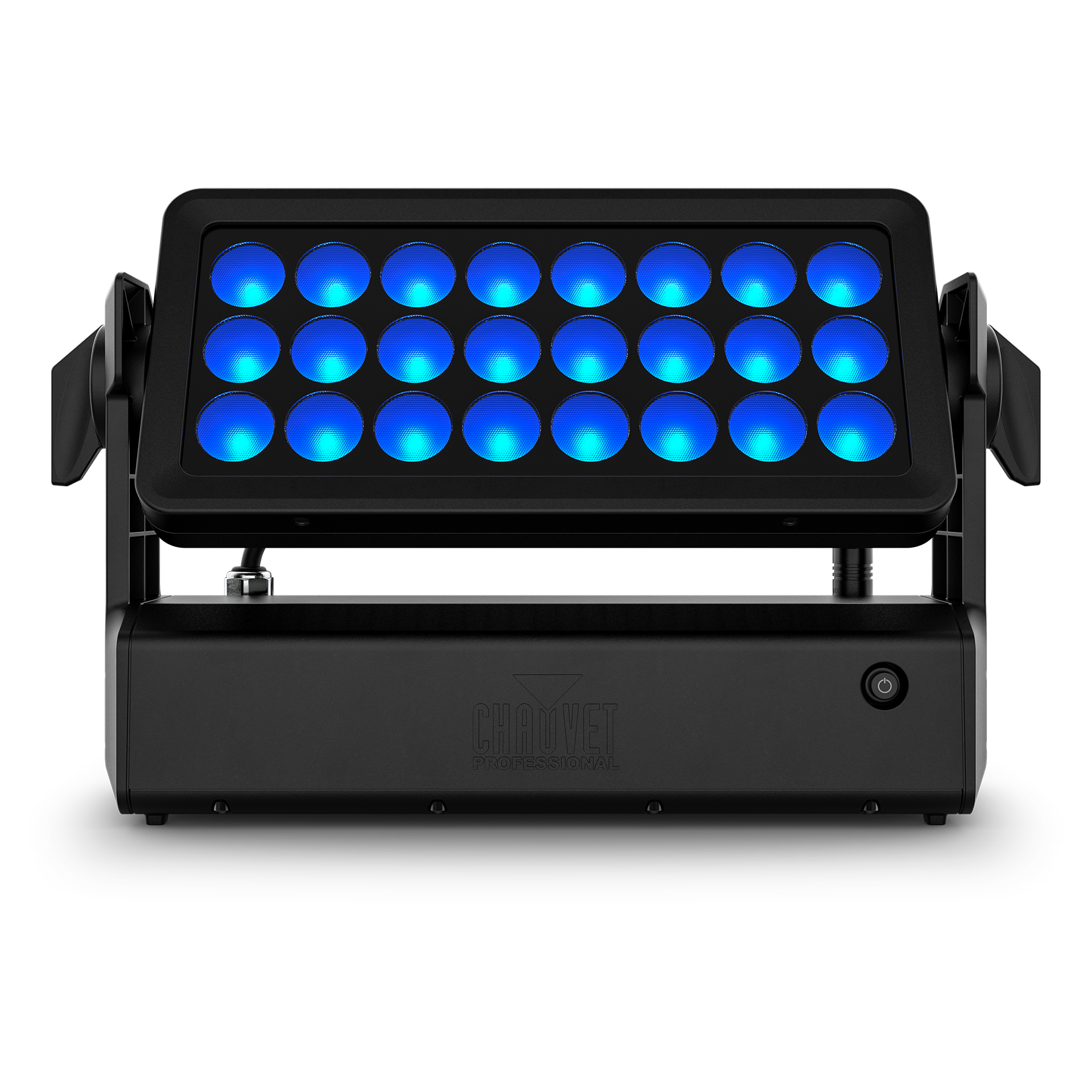 A completely wireless, IP65-rated, and battery-powered wash light with 24 quad-color LEDs, delivering a versatile spectrum of bright, saturated colors with adjustable beam angles and multiple control options.