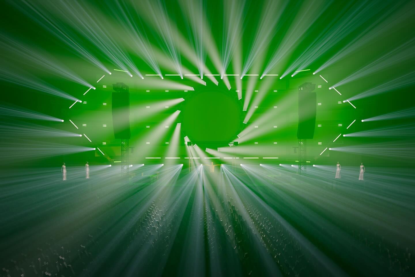 Washes lining the periphery of the circle that were interspliced with video panels created a breathtaking impression that the big stage was floating in space.
