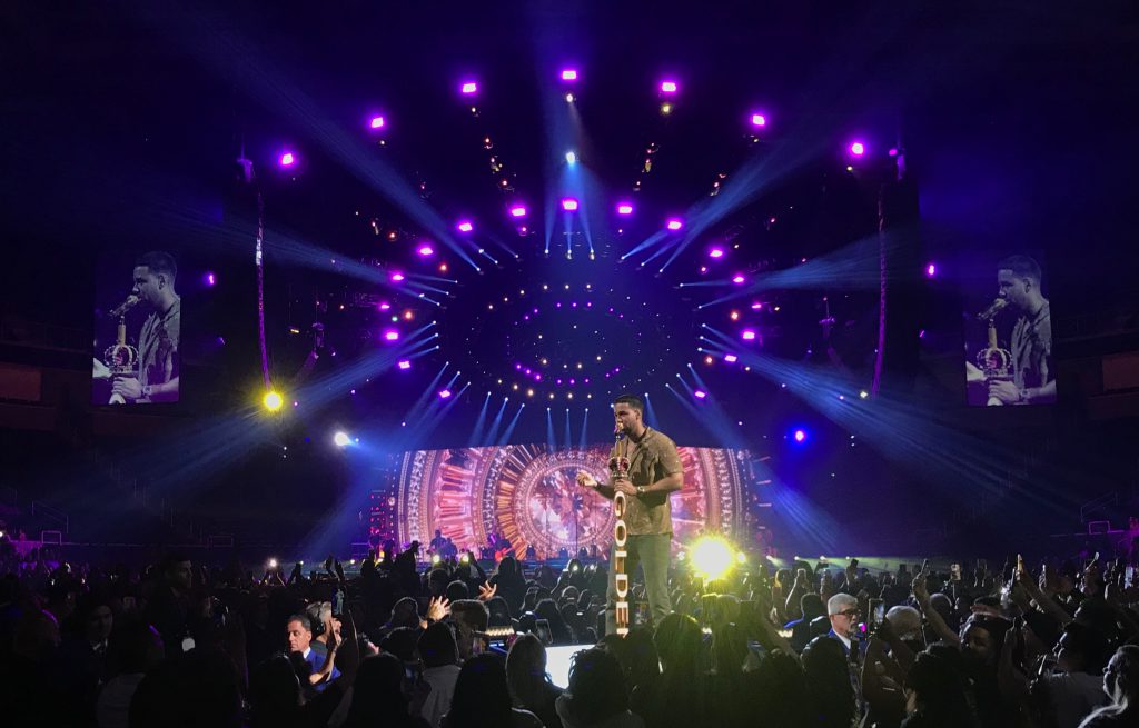 LAS VEGAS – When describing his lighting design for the second leg of superstar Romeo Santos’ Golden Tour, Bruce Rodgers of Tribe, Inc. says, “It’s all about scale and simplicity.” The “scale” part is readily apparent to anyone who catches a show on the 18-city tour that began in September. Dominating the area over center stage is a colossal overhead truss structure that resembles a UFO about to land. Intense brightness radiates from the hovering form, courtesy of 117 CHAUVET Professional Maverick MK3 Wash fixtures, which were supplied by 4Wall Entertainment Lighting.