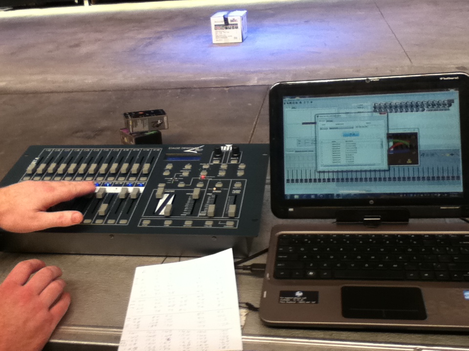 The presentation from offstage. We waited until it got dark to start going over the fixtures themselves.