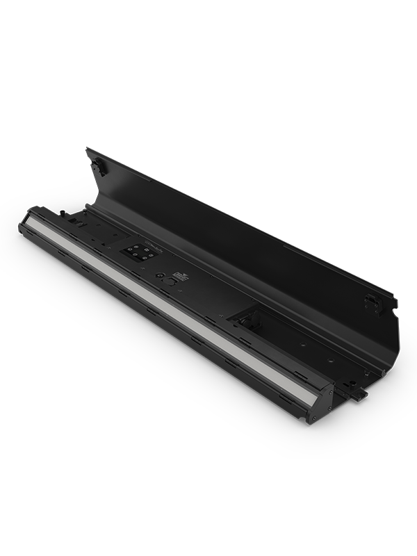 This low-profile 1-meter IP65-rated RGBwWL LED footlight projects high-quality white light and a full range of color through a single-source lens designed to produce smooth, even output. Featuring fully-controllable RGB marker lights that can be used to cue talent or mark the edge of a stage, seamless end-to-end alignment, and a covered display, this elegant fixture also comes with a stealth filter that enables it to disappear when off.